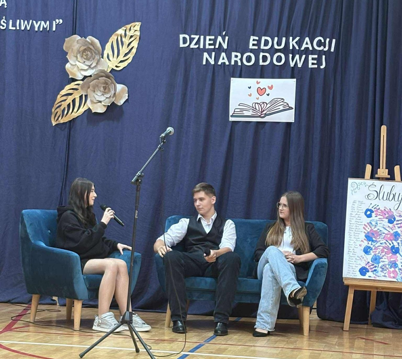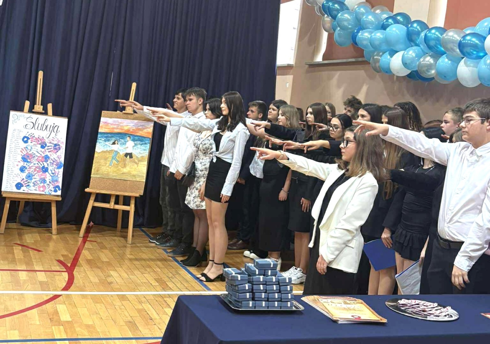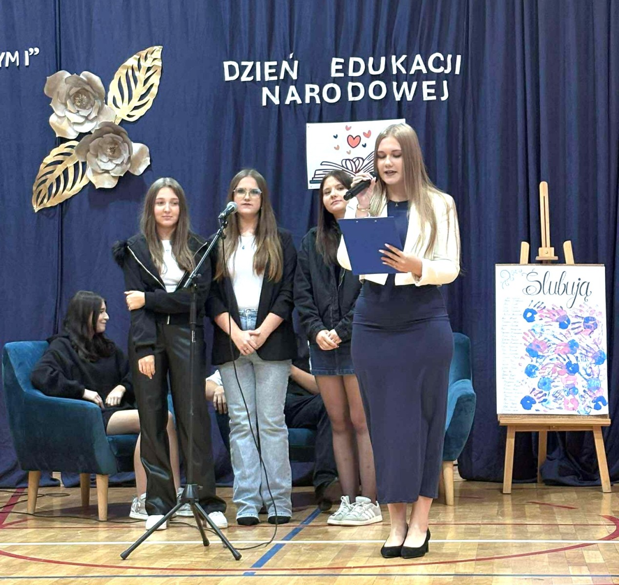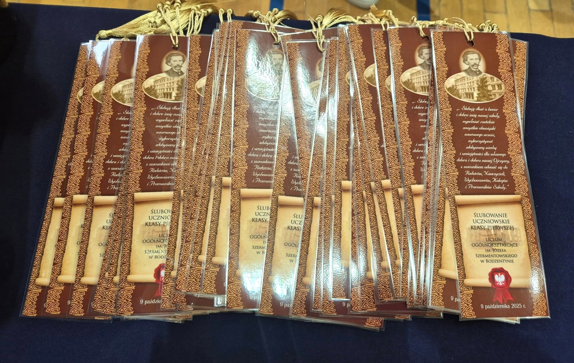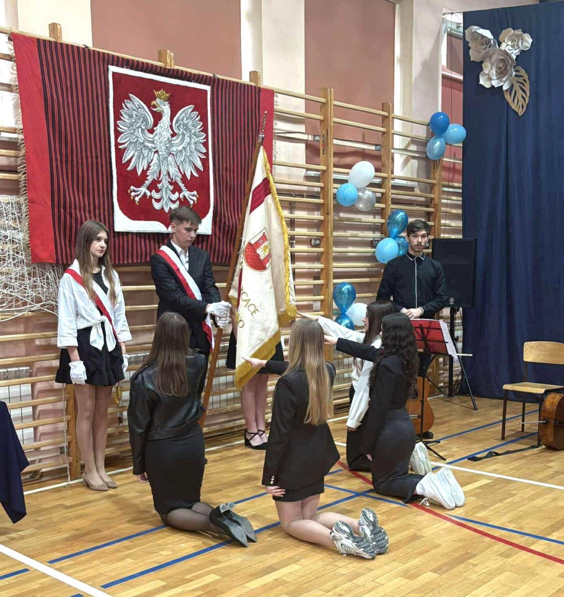 Zgodnie z tradycją szkoły Dzień Edukacji Narodowej ściśle wiąże się z uroczystym ślubowaniem klasy pierwszej. Tak było i w tym roku. Wskazując na sztandar uczniowie przysięgali m.in. dbać o dobre imię szkoły, kultywować jej tradycje i przestrzegać zasad koleżeńskiego współżycia. Symbolem przyjęcia w poczet uczniów liceum w Bodzentynie stały się tarcze, które zostały rozdane uczniom klasy pierwszej przez wychowawcę.