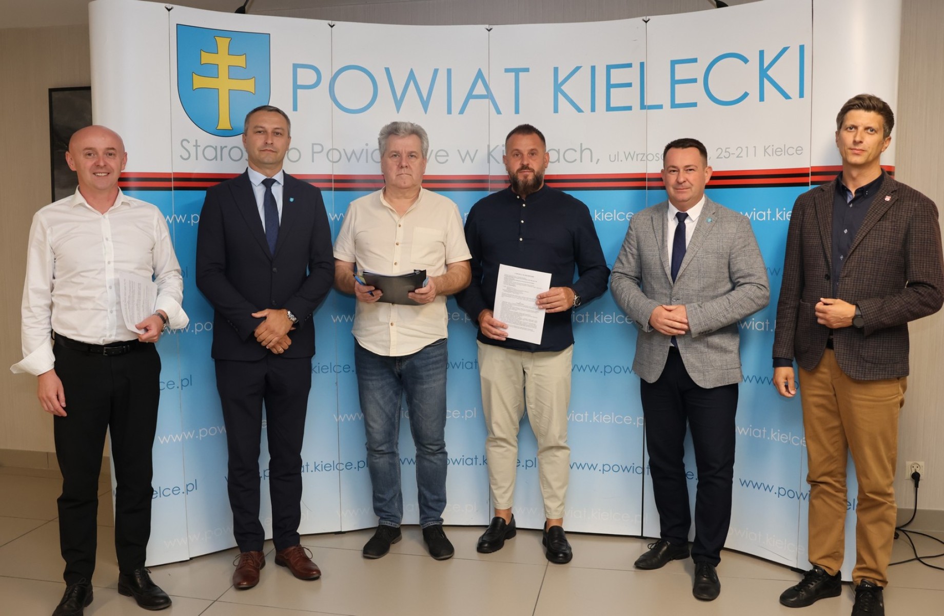 W podpisaniu umowy, w Starostwie Powiatowym w Kielcach uczestniczył wicestarosta kielecki Tomasz Dulny, członek Zarządu Powiatu Cezary Majcher, Prezes Zarządu firmy „ALBUD” Sp. z o.o. Paweł Bednarczyk.